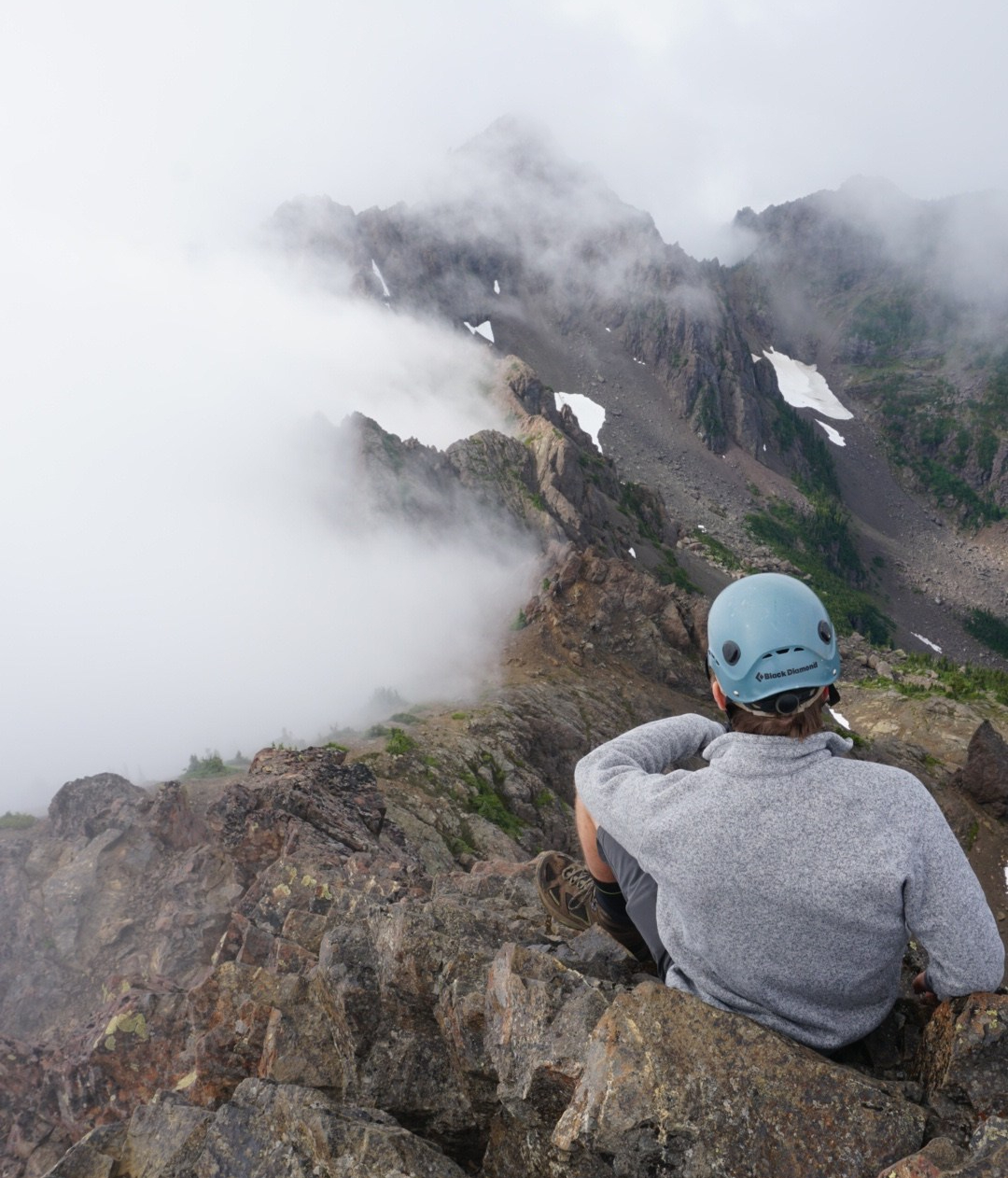 We needed the helmets to protect against rock fall as we scrambled up the large rock gully. Luckily we never saw anyone else who could knock rocks down on us. We continued up and around the left side of the gully until reaching the southern ridgeline.