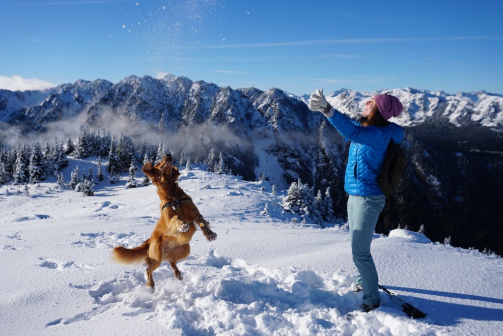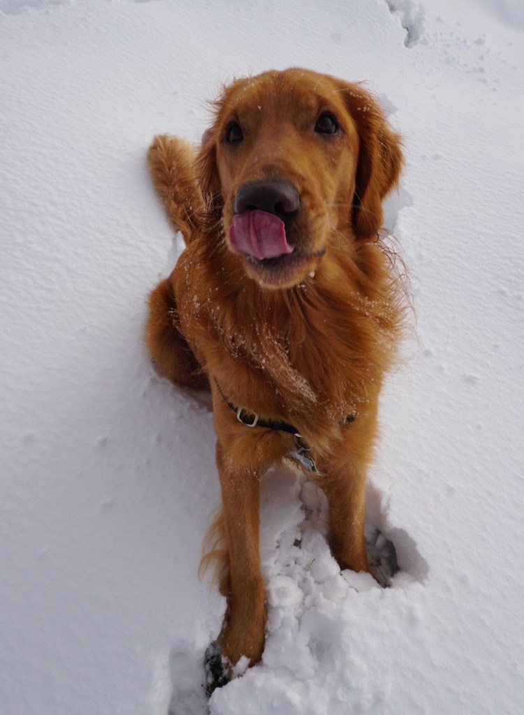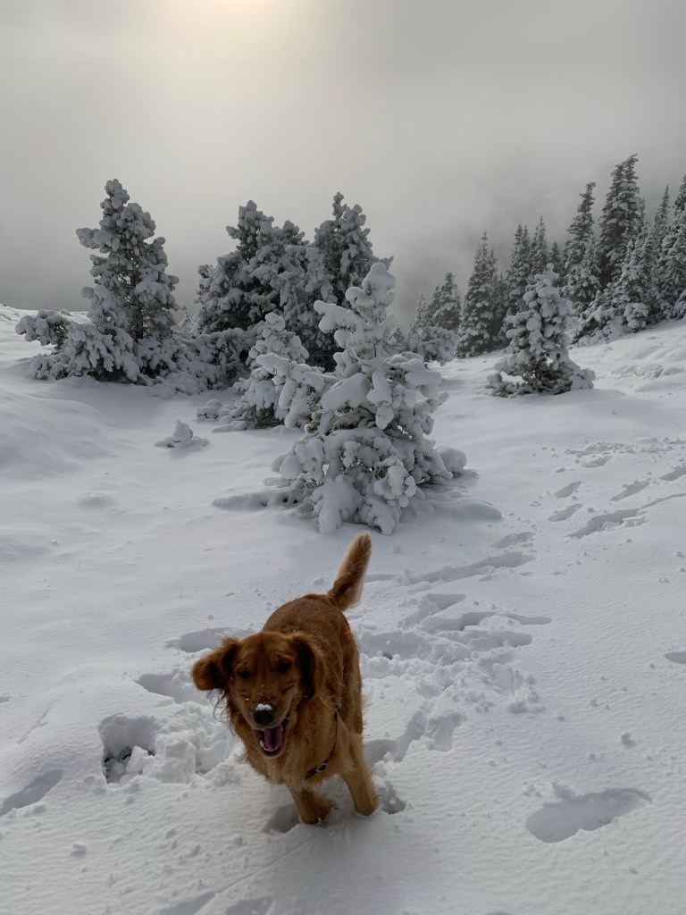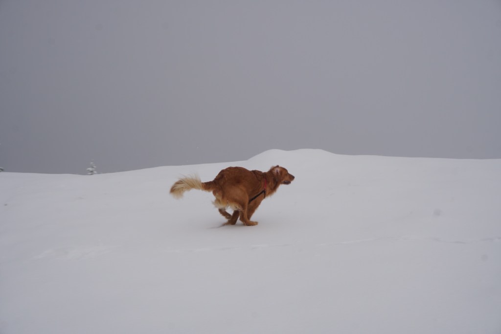 The snow started shortly after and made the steep final third of the hike slightly easier to navigate. Moose was very quick to get reacquainted with the snow!