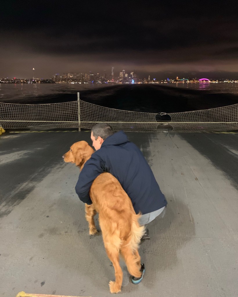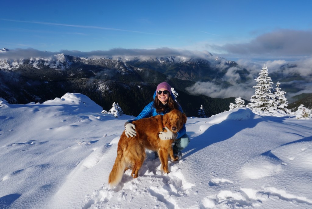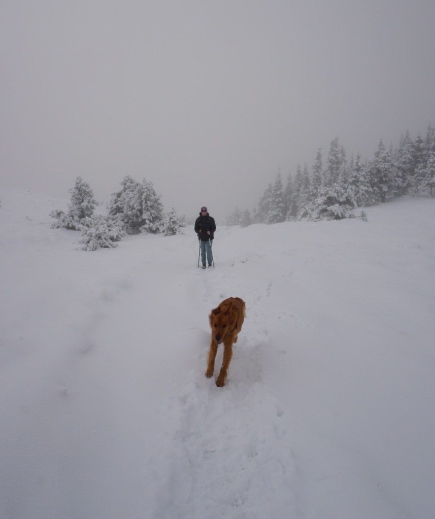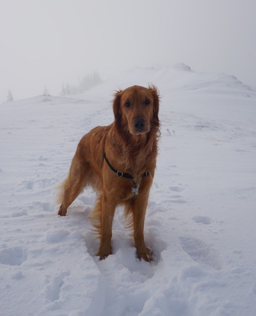 There was no visibility but we pushed through to the summit anyways. Moose was a champ!