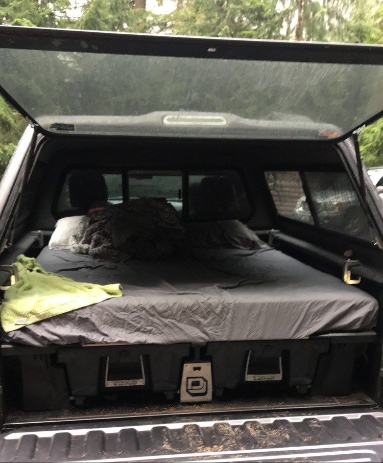 The forecast looked good on Sunday so Ellie, Moose and I took the ferry to Bainbridge Island and drove to the lower trailhead near Quilcene that Saturday night. We slept in our cozy truck bed and got an early start the next day.