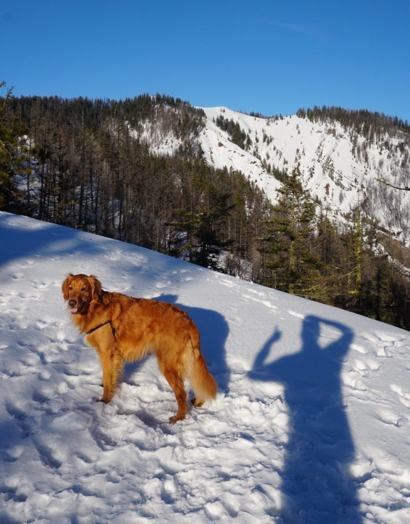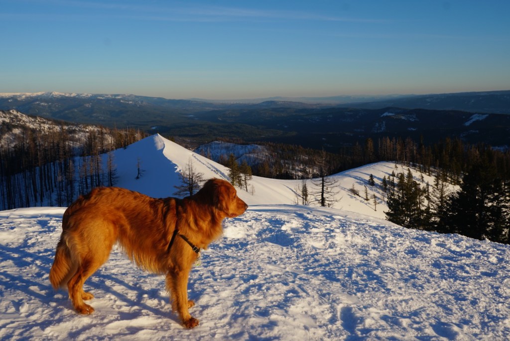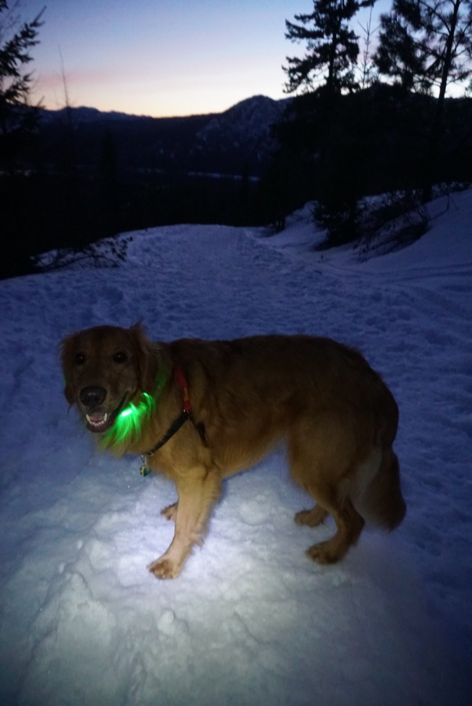 After a glorious sunset we made our way back to the trailhead as fast as we could with my headlamp guiding us. This was the perfect snow for moose to run on and he did a lot of that! This is a great, quick and easy winter day hike!