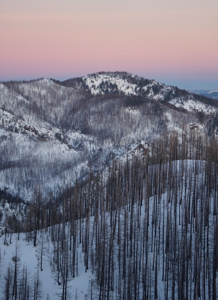 The hills with barren trees contrasted by the snow reminded me of my hair color. Sadly all these trees were burned during the 2017 Jolly Mountain fire. I witnessed the first plumes of smoke from that fire while hiking up Granite Mountain.