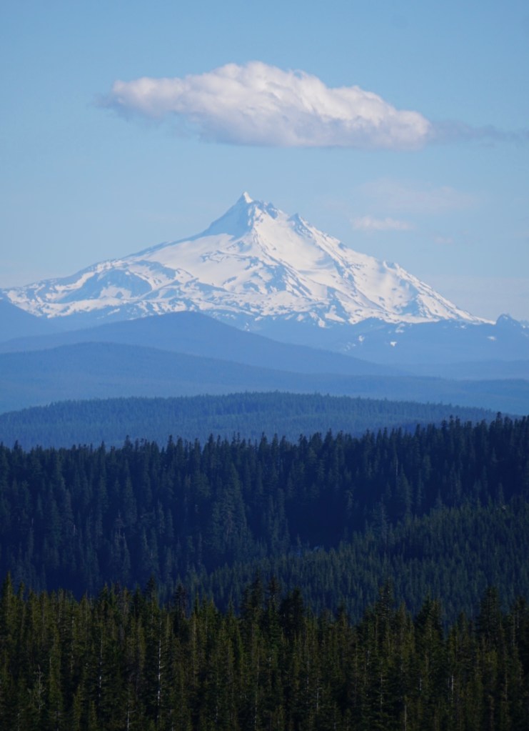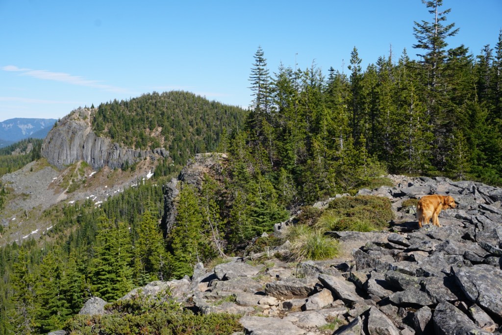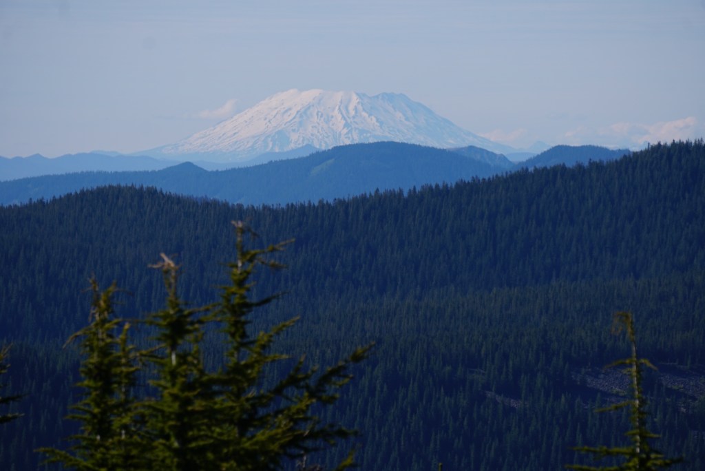 We stopped at the westernmost point on the summit ridge to enjoy the clear views of the Cascade volcanoes once more before descending into the forest.