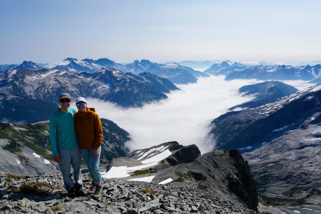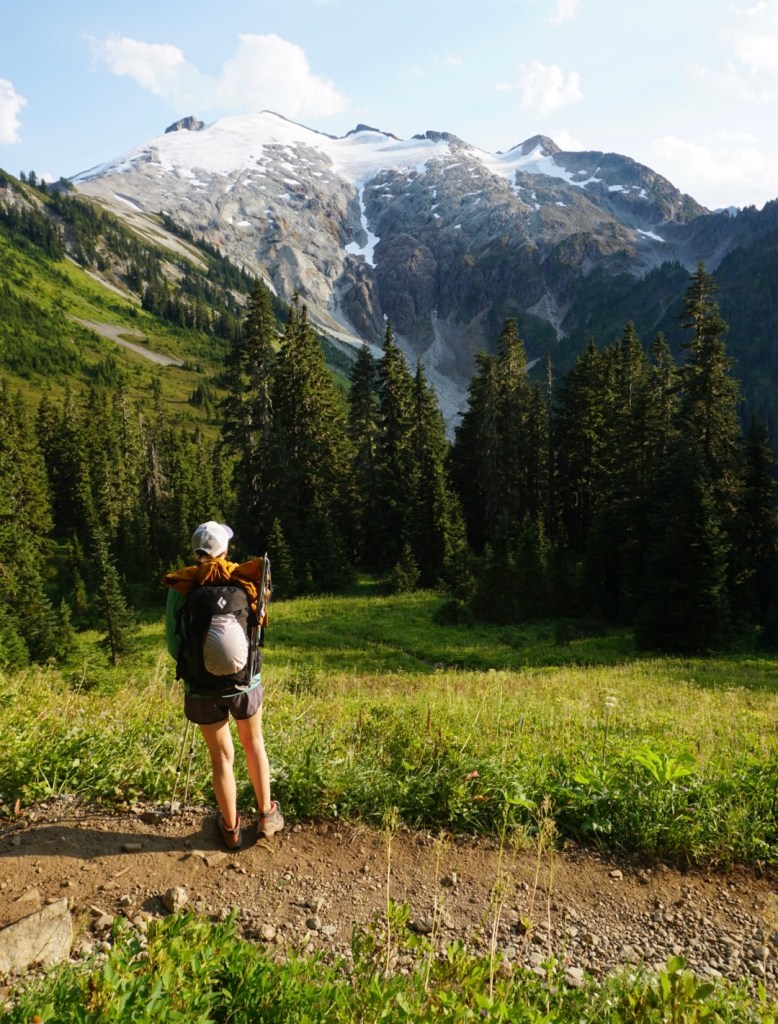 My wife Ellie and I wanted to have a mini honeymoon backpacking trip in the North Cascades National Park, so we emailed the park Thursday requesting permits in a few different cross-country zones. With multiple options available we chose the Icy Zone. That was the only zone without another permit taken so we had a good chance to sleep on the summit! Friday afternoon we drove five hours to the Hannegan trailhead near the Mt Baker Ski Area and started hiking with full packs in the heat of the day.