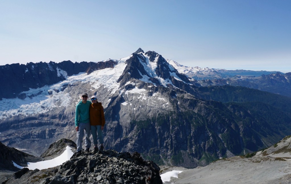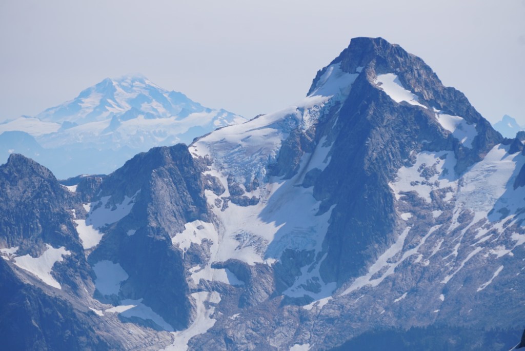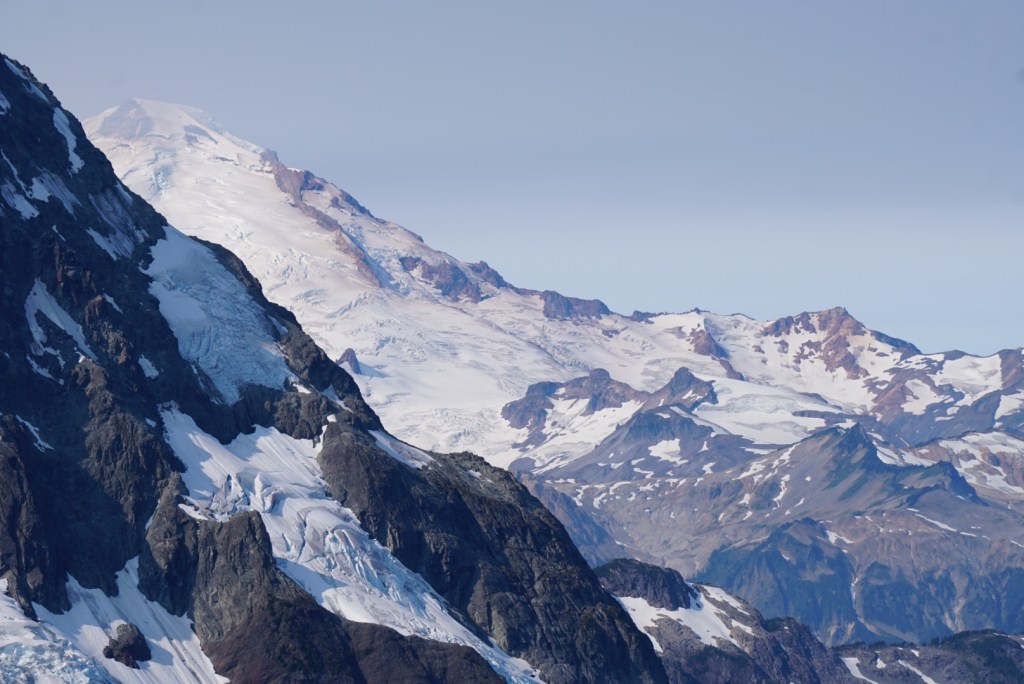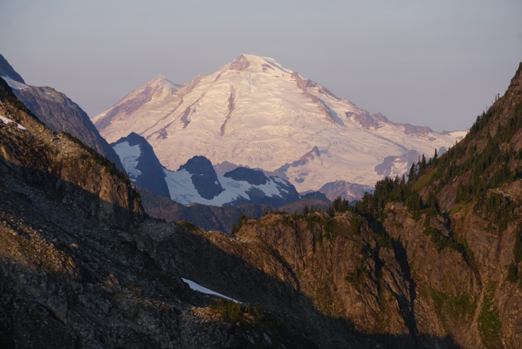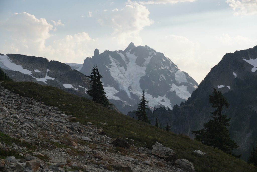 We took a very brief break at the pass thanks to the bugs but seeing Mount Shuksan and the Nooksack Tower from a totally new perspective was a welcomed sight!