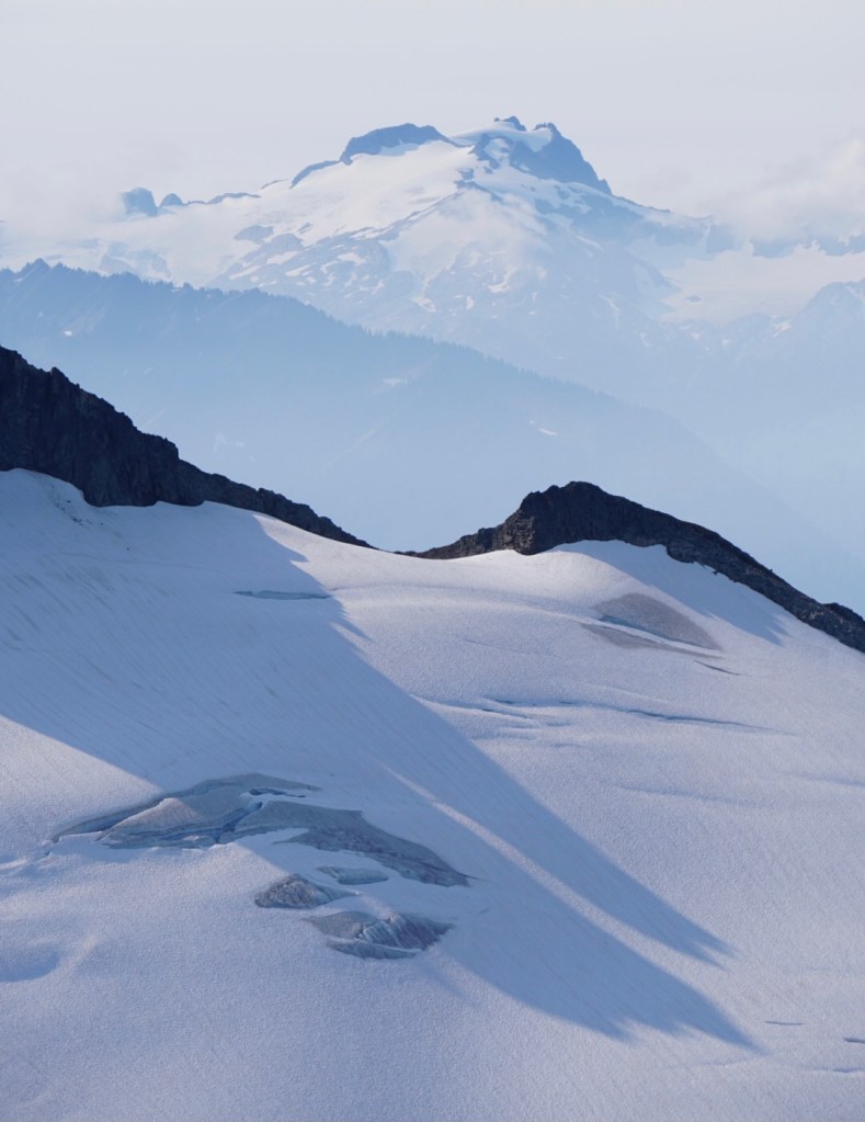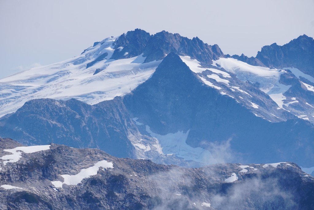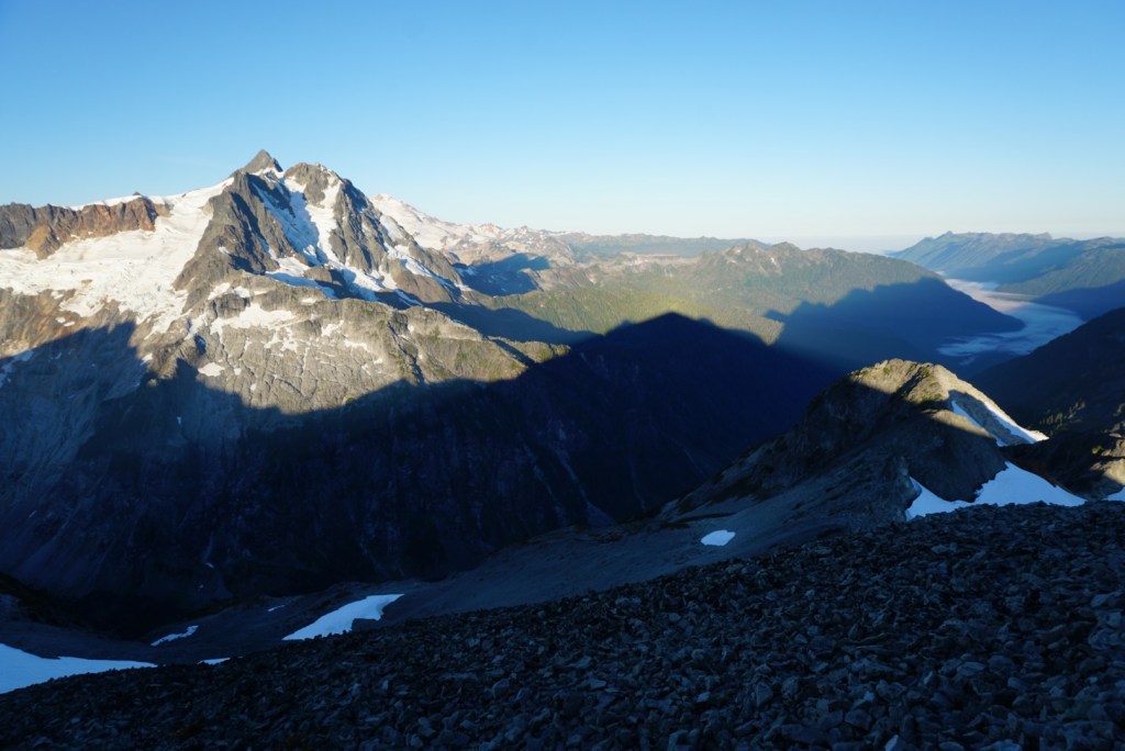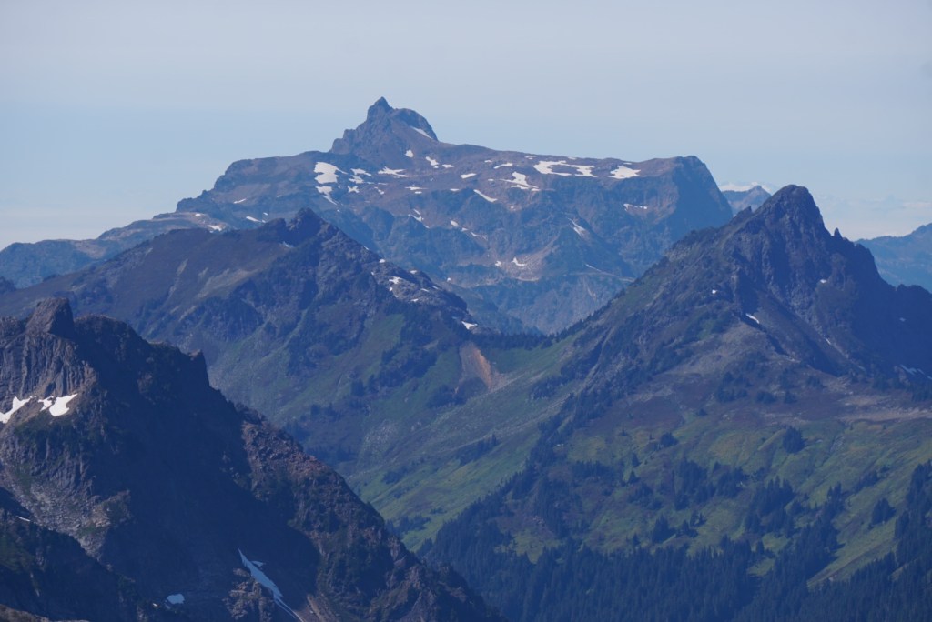 We took a very brief break at the pass thanks to the bugs but seeing Mount Shuksan and the Nooksack Tower from a totally new perspective was a welcomed sight!