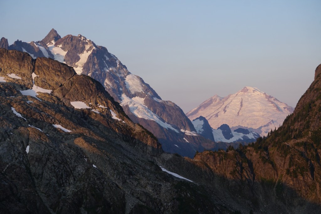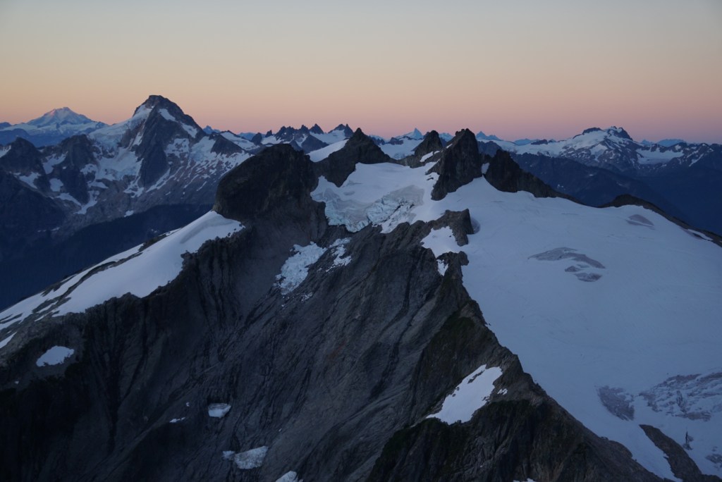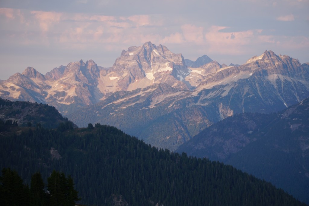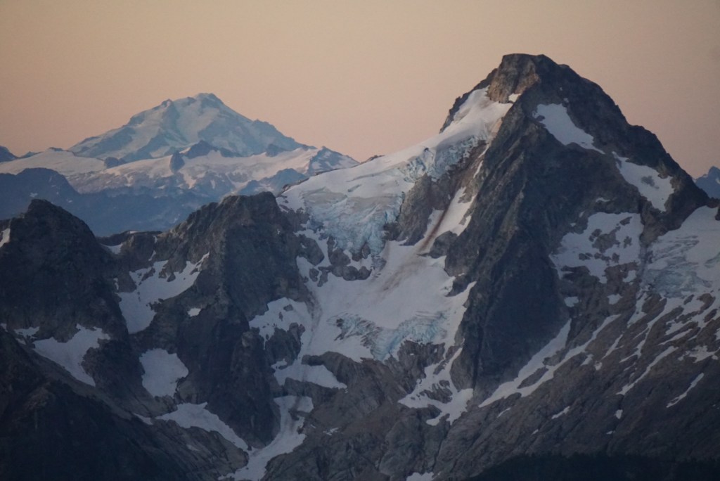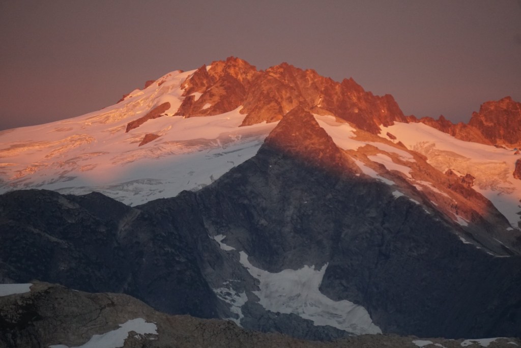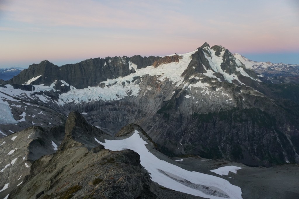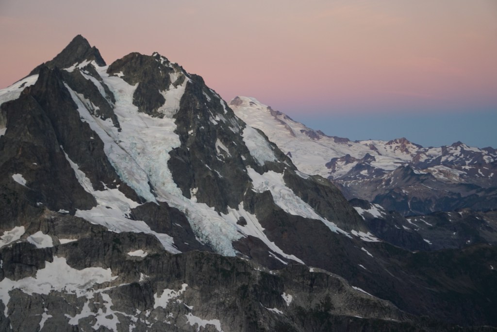 The alpenglow looked especially good on Ellie and the Northern Pickets.