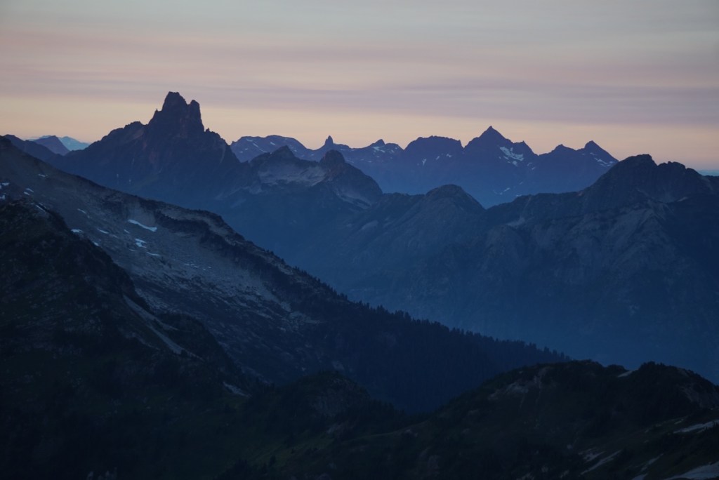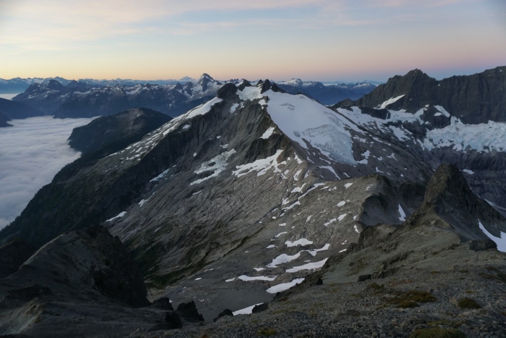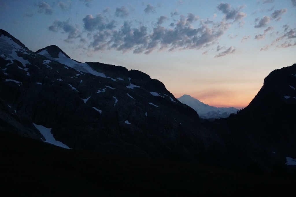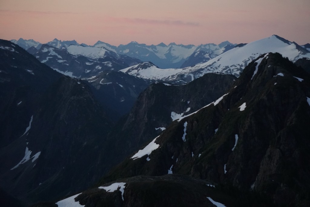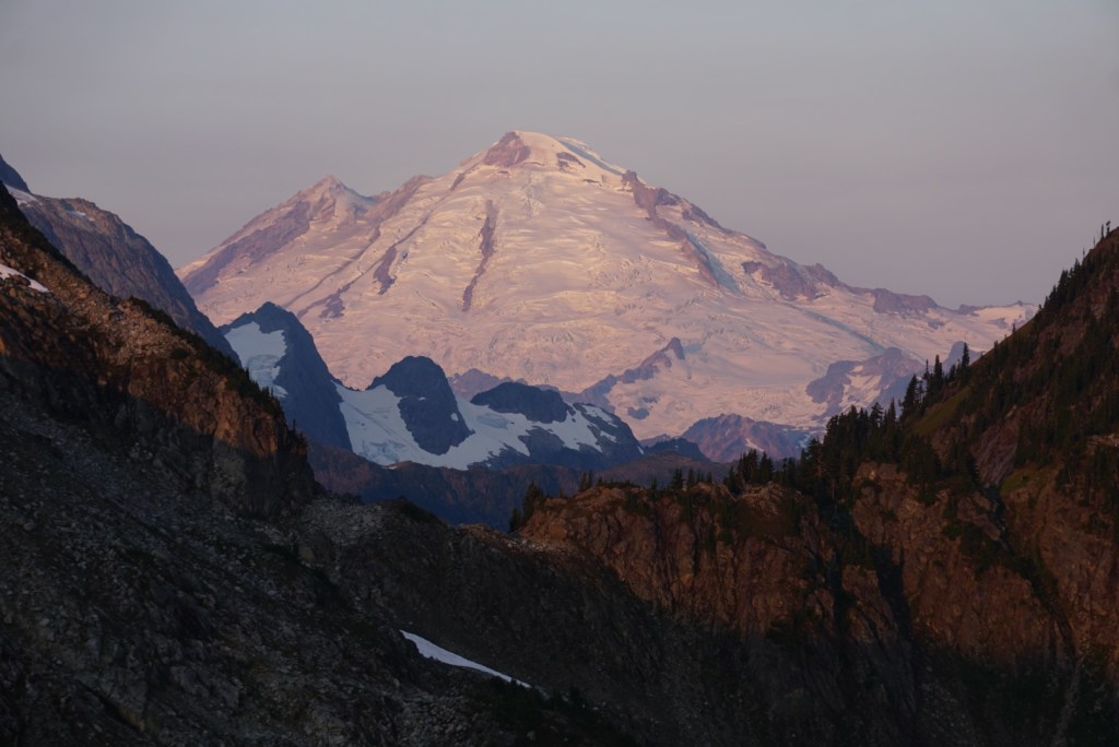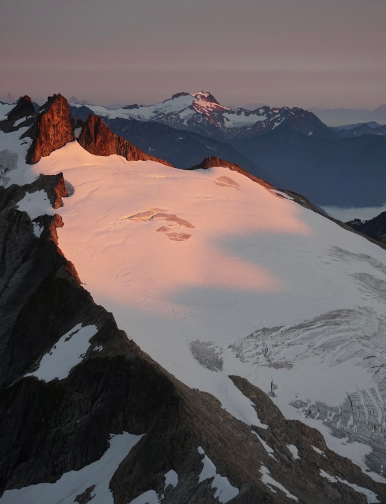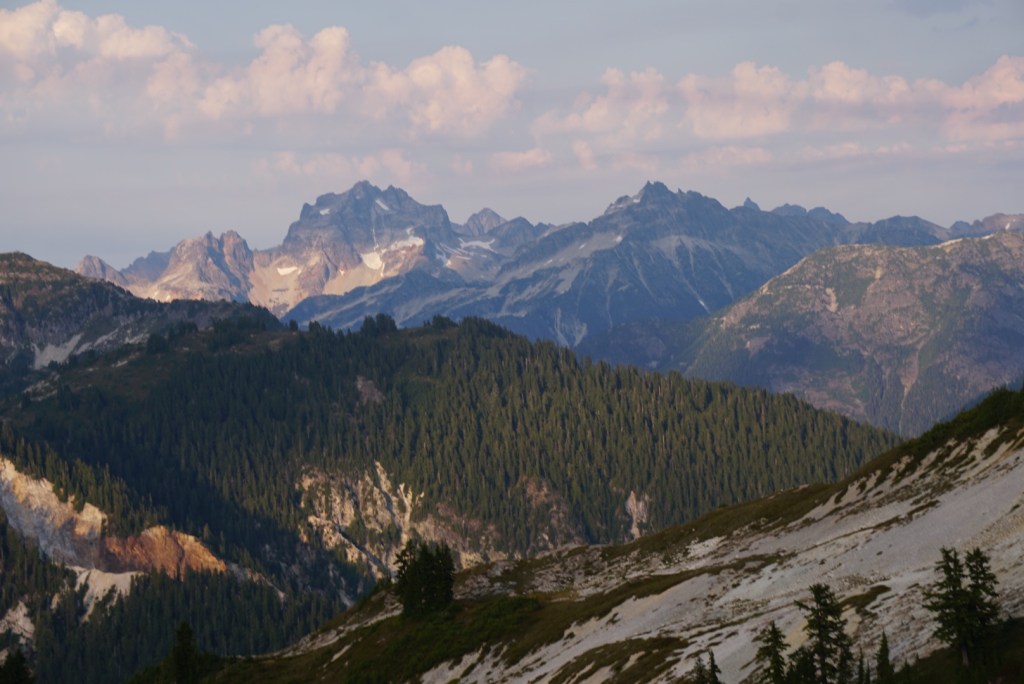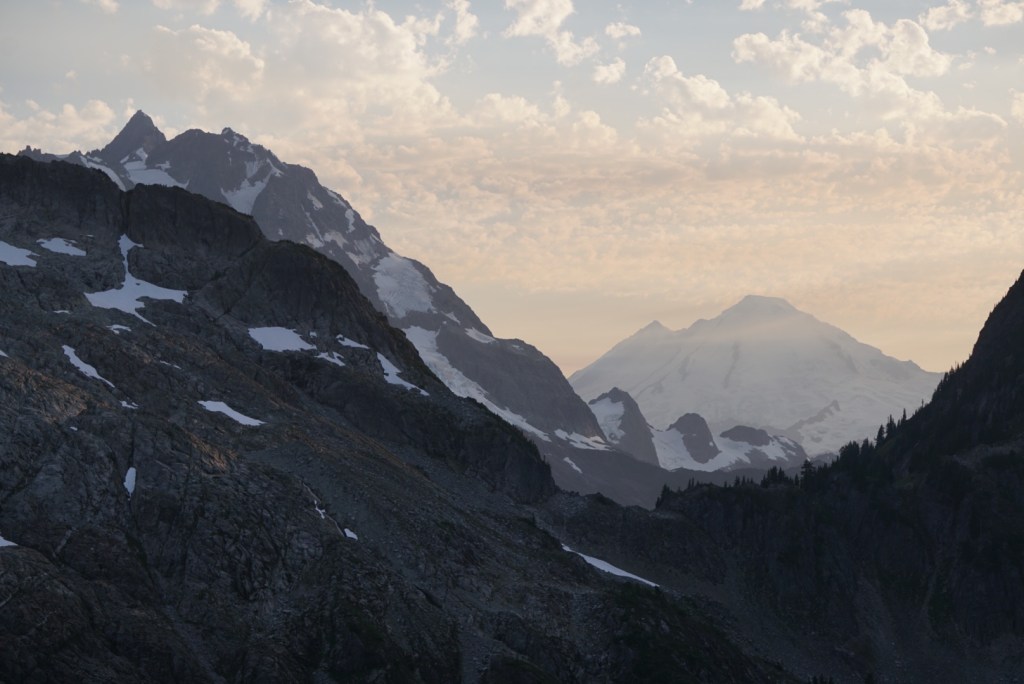 The alpenglow looked especially good on Ellie and the Northern Pickets.