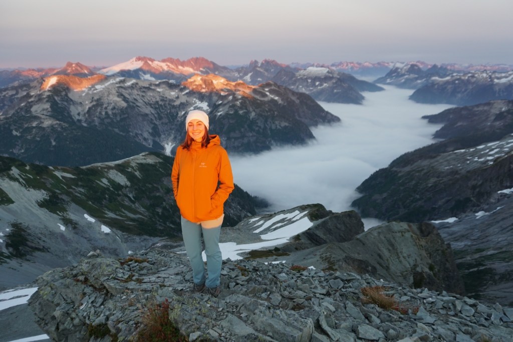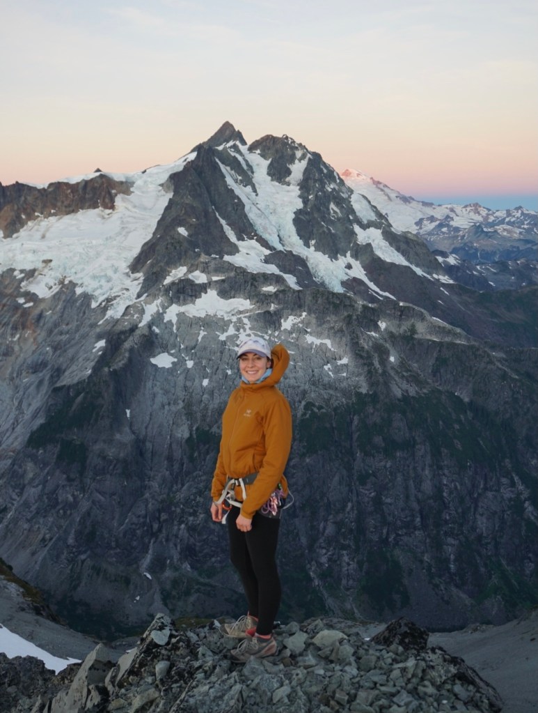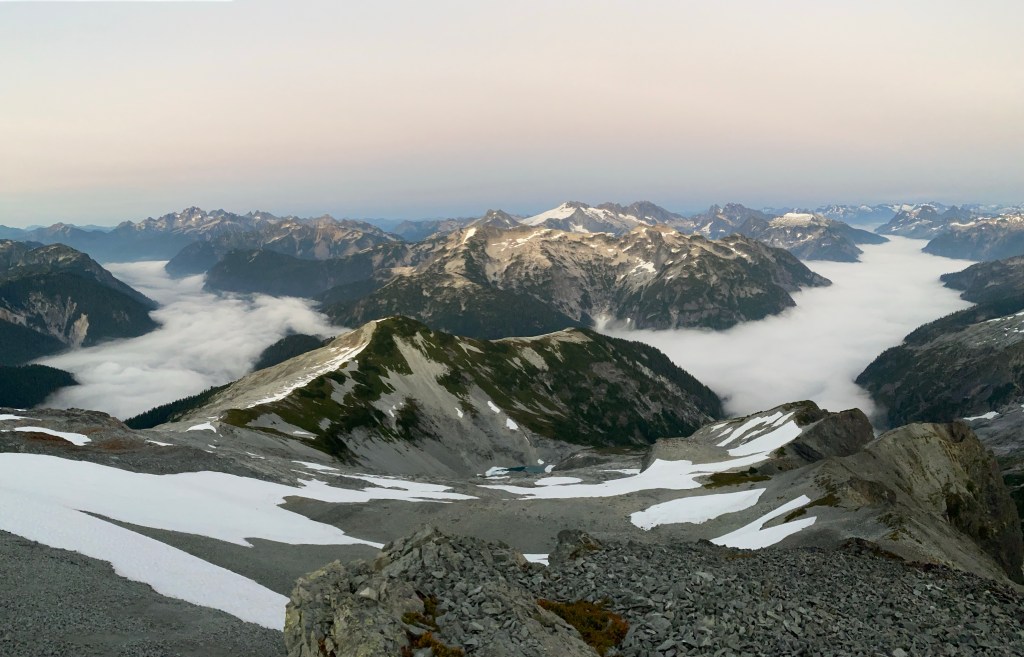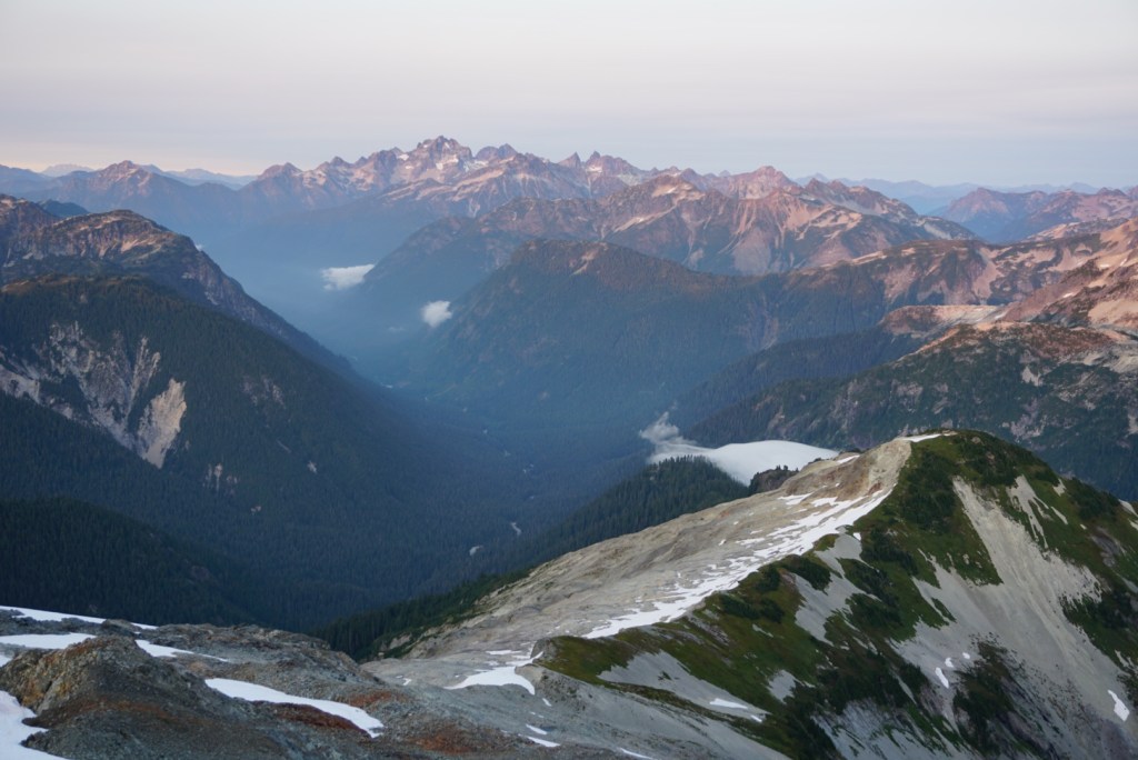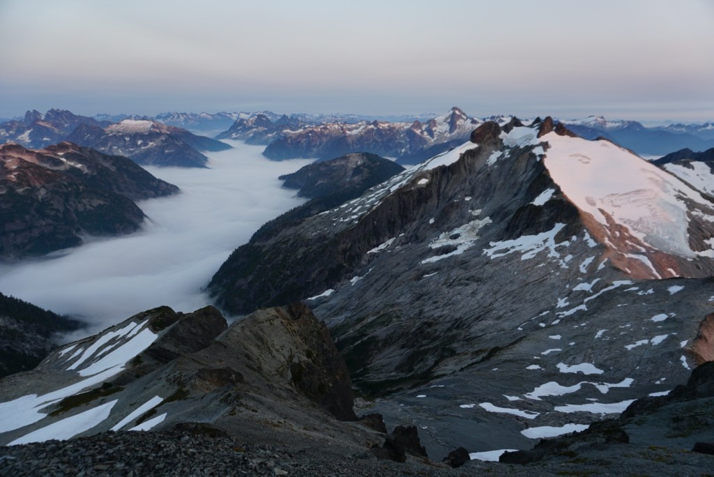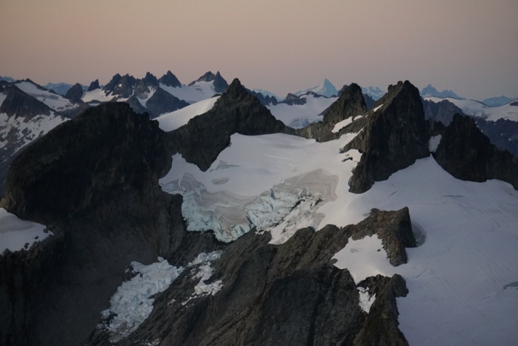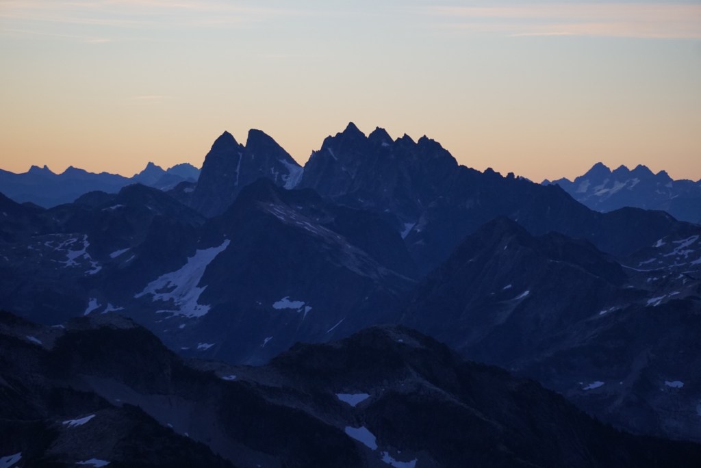 The alpenglow looked especially good on Ellie and the Northern Pickets.