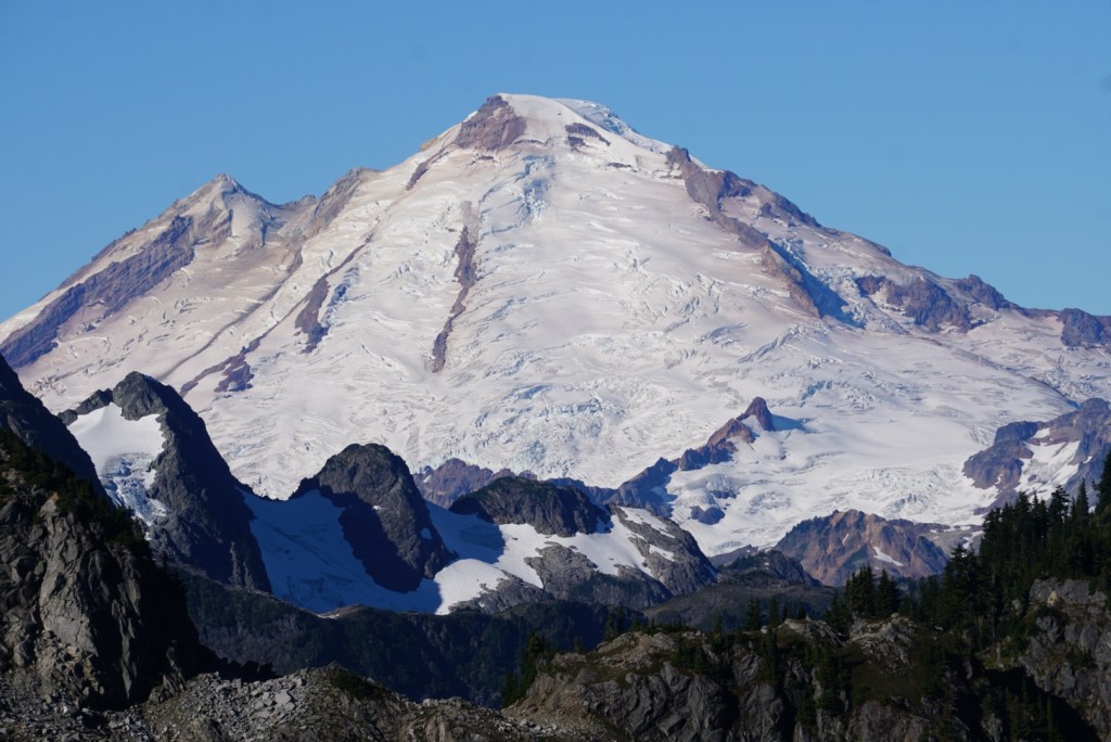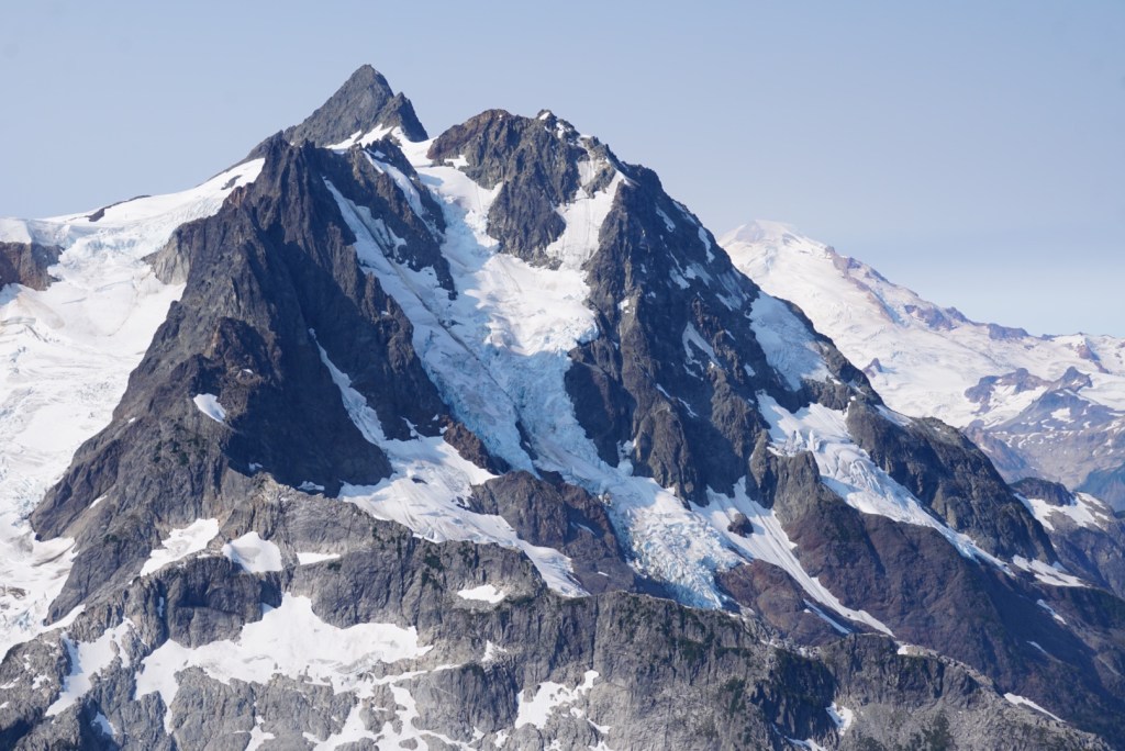 Ruth Mountain is so spectacular it’s a worthy honeymoon destination! It’s a glaciated peak just east of Mount Shuksan in the amazing Skagit Range of the North Cascades! The summit lies within the North Cascades National Park Service Complex, but the west side of the mountain lies within the Mt Baker Snoqualmie National Forest and the Mt Baker Wilderness. It’s perfectly situated between five different valleys that rise steeply into some of the most beautiful and unique mountains in America! You can certainly day hike Ruth but it’s too pretty to rush.