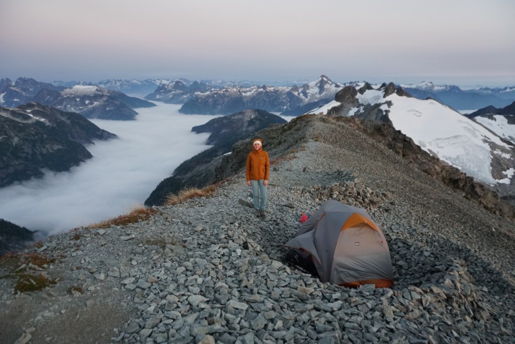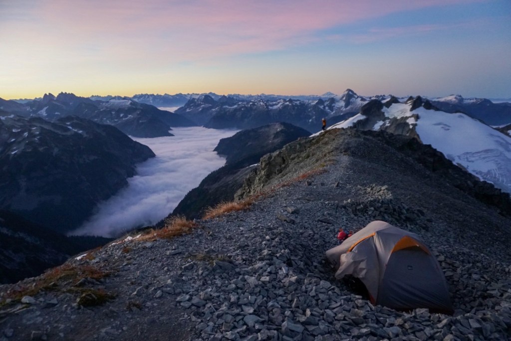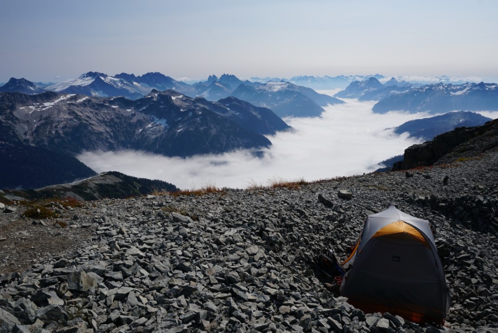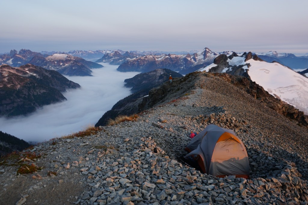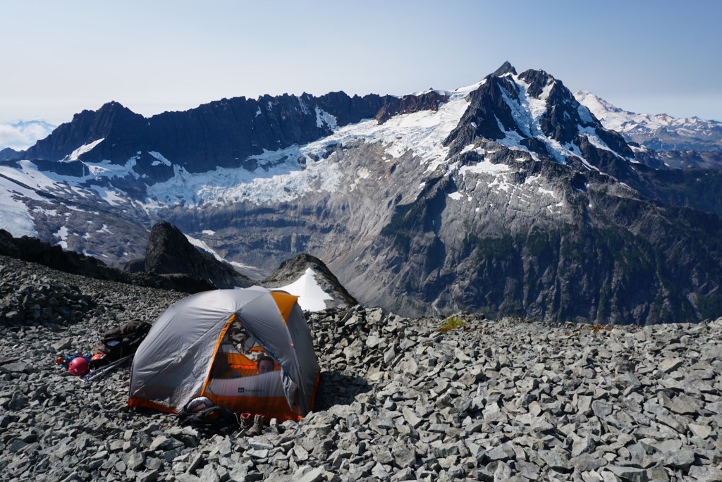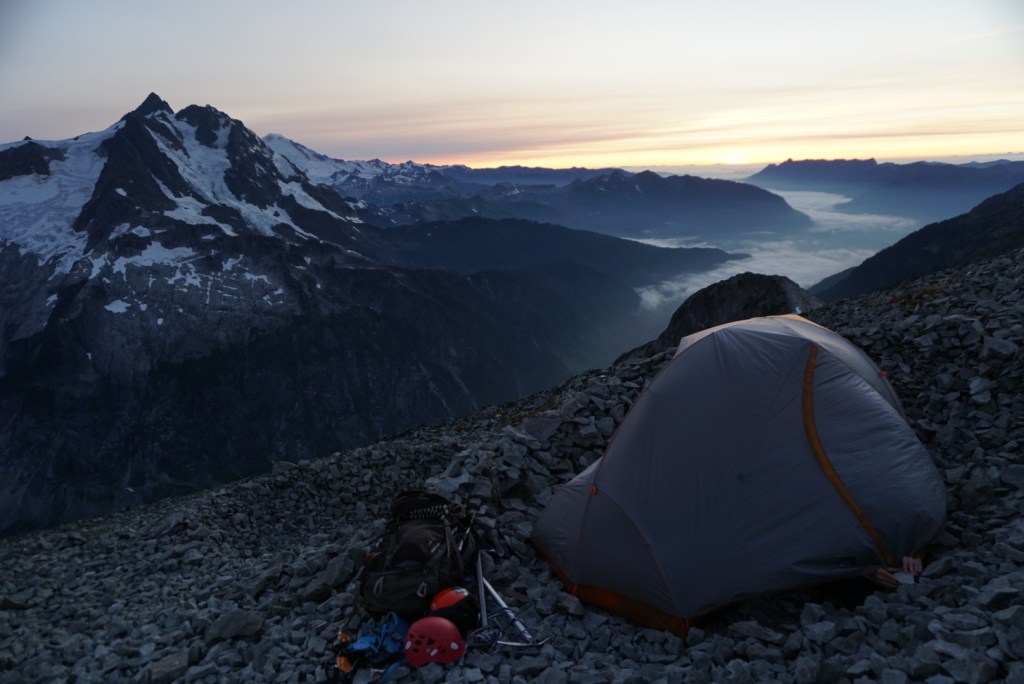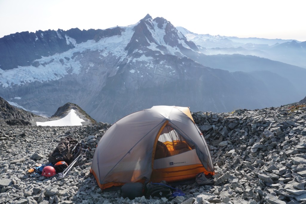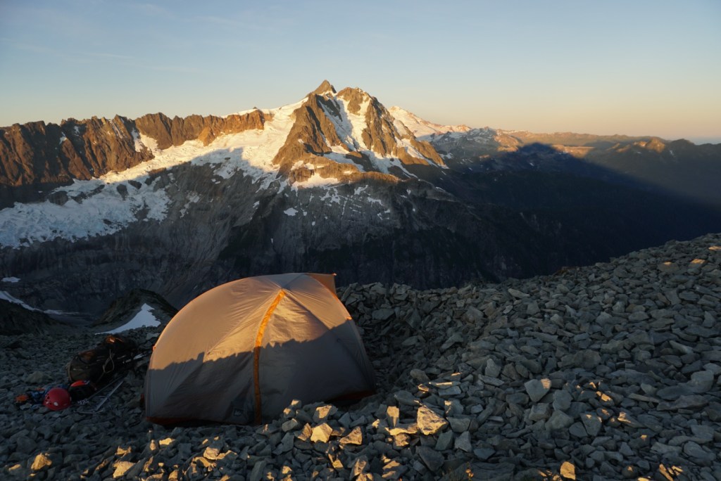 We took very few breaks up to this point and were pooped so we decided to setup camp on the saddle and head up in the morning. It was just us and the extraordinary scenery of the American Alps! The suffering was already worth it!