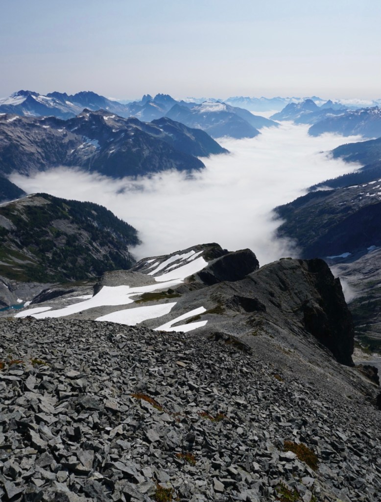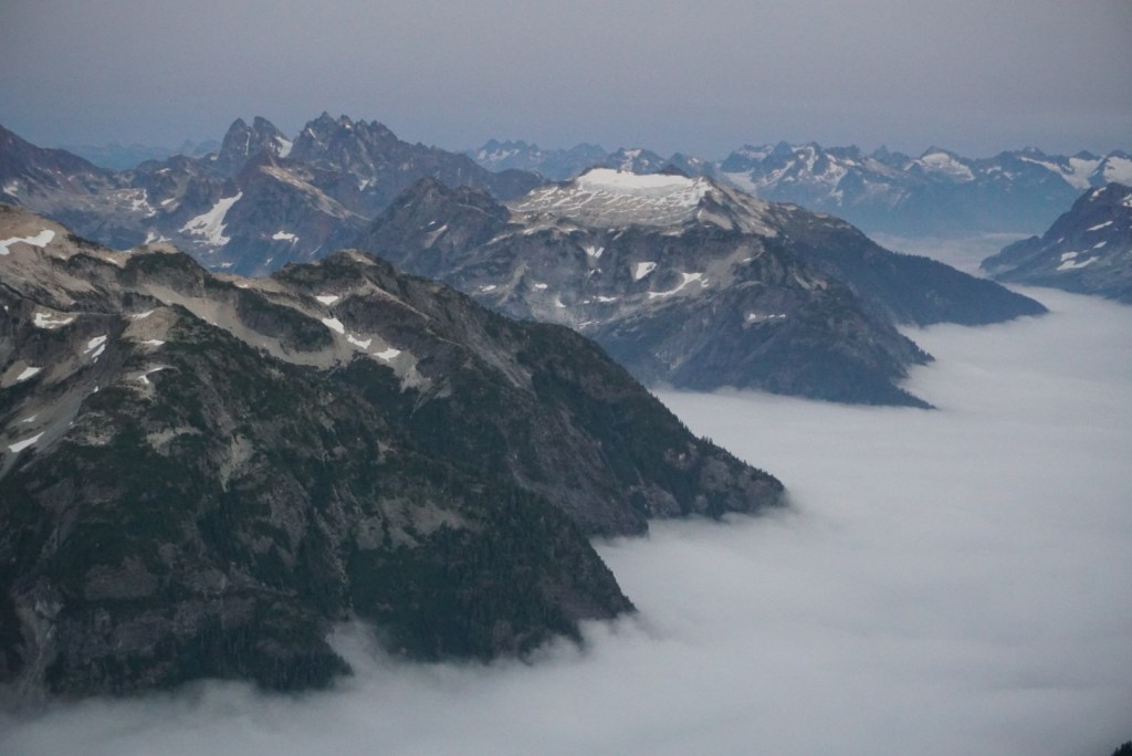 As we reached the summit we were amazed by the cloud inversion snaking between different river valleys.