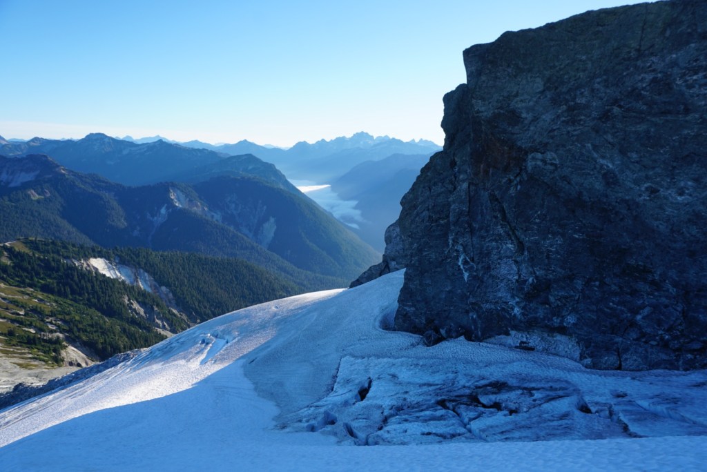 The glacier was easy to descend with crampons on. The only concern was near the toe of the glacier but a fall there would be no more than a few feet.