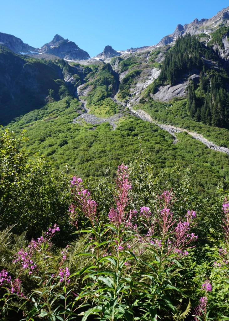 It’s a gentle four mile hike through the Ruth Creek Valley to Hannegan Pass but almost all of it is in the sun and the bugs were out to get us. The hike started off more like a suffermoon but it got better the higher we went. We were thankful we didn’t choose a tougher hike like Snowfield Peak or Mount Shuksan especially considering we both just got over an illness.