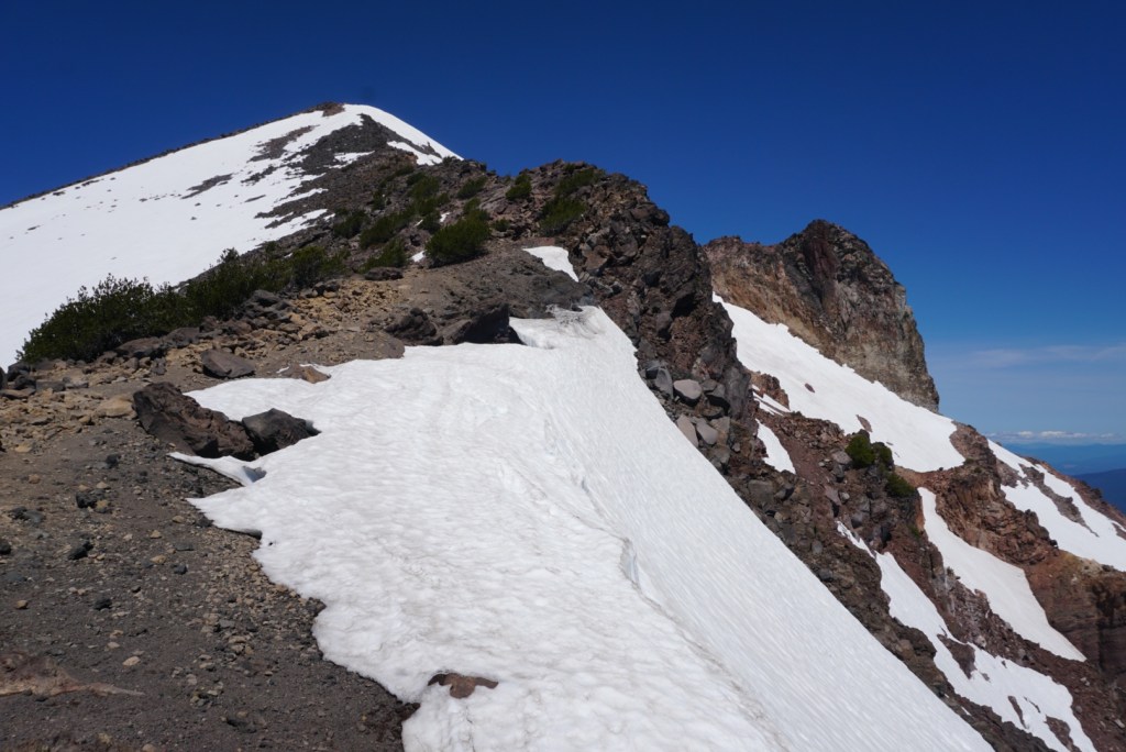 4 hours in I hit some snow leading to the summit. I stayed on top for about 30 minutes and soaked up the clear views of the Sky Lakes!