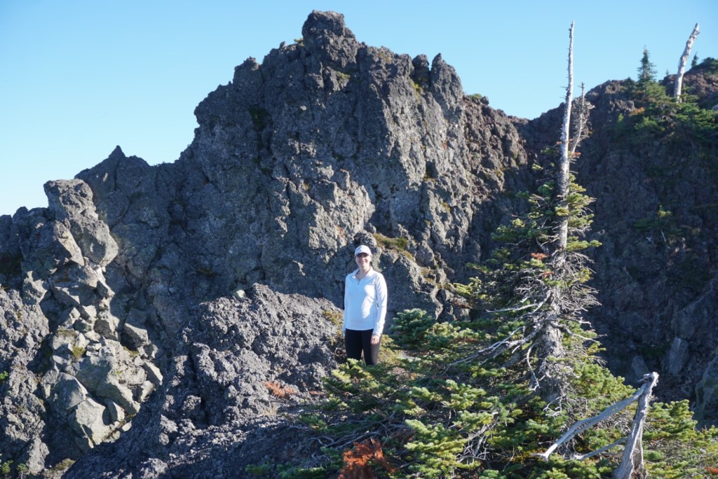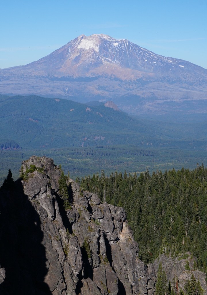 Lemei Rock is the highest peak in the Indian Heaven Wilderness, which is surrounded by Cascade volcanoes, big (Rainier, Adams, St. Helens, and Hood) and small. The wilderness area lies within the Gifford Pinchot National Forest and is a short drive from Trout Lake, Washington where Mount Adams is king. Lemei is a Chinook Indian word meaning “old woman.” This old mountain is a craggy remnant of a volcano whose crater is now Lake Wapiki. There are a few maintained trails that lead to the base of the summit ridge but from there it’s a rock scramble as the name suggests.