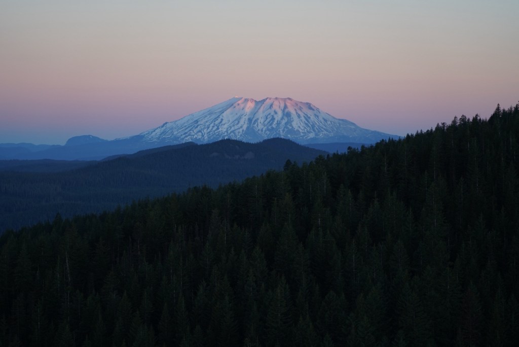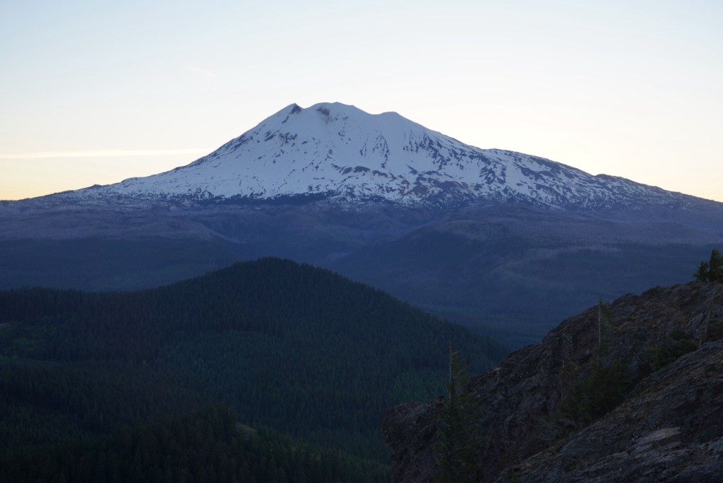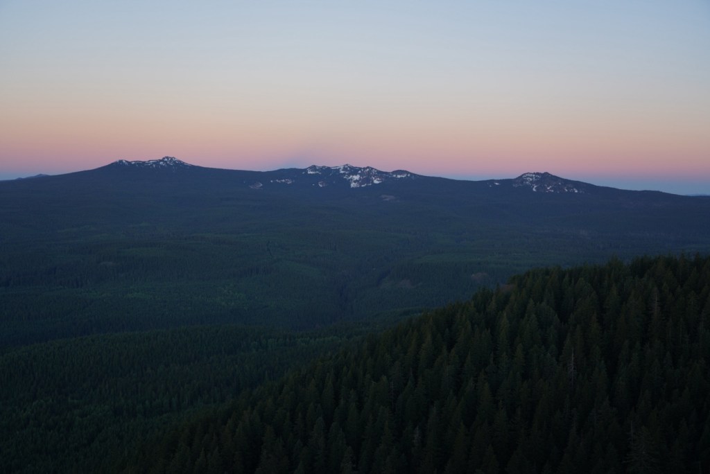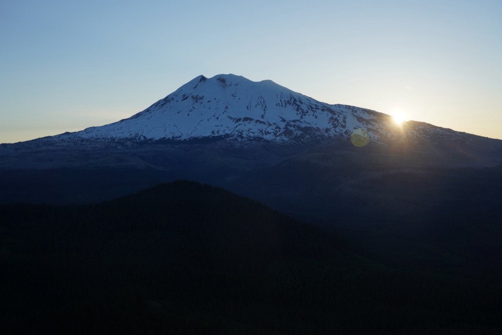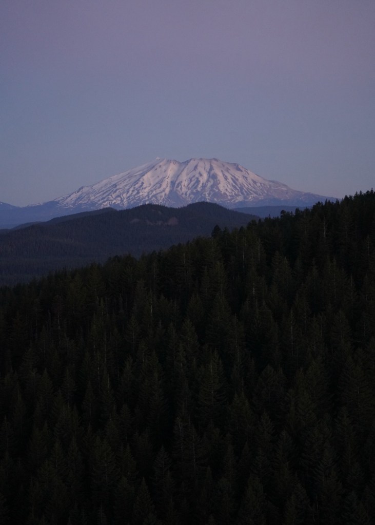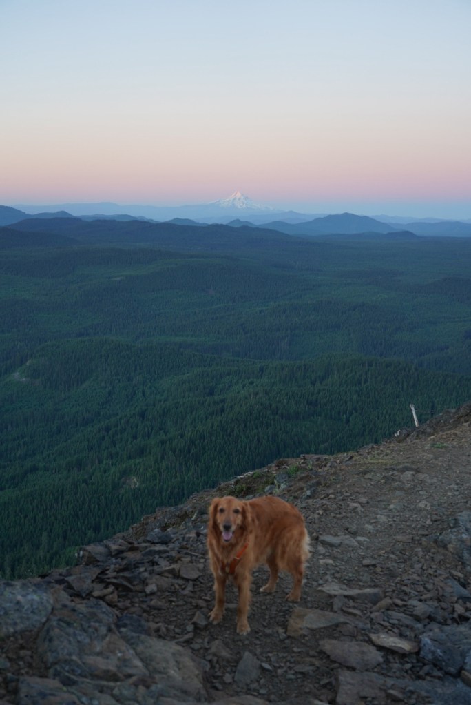 Moose and I left Vancouver with enough time to catch a sunset on Mount Adams. I always love driving along the Columbia River Gorge and breaking my neck to catch a glimpse of all the peaks and trails I’ve enjoyed hiking from Portland to Hood River. The beauty can be distracting as I missed my exit which added a lengthy detour. The sun had just set as we reached Trout Lake but Mount Adams looked beautiful in blue! The mosquitos were awful so I did not enjoy this view long.