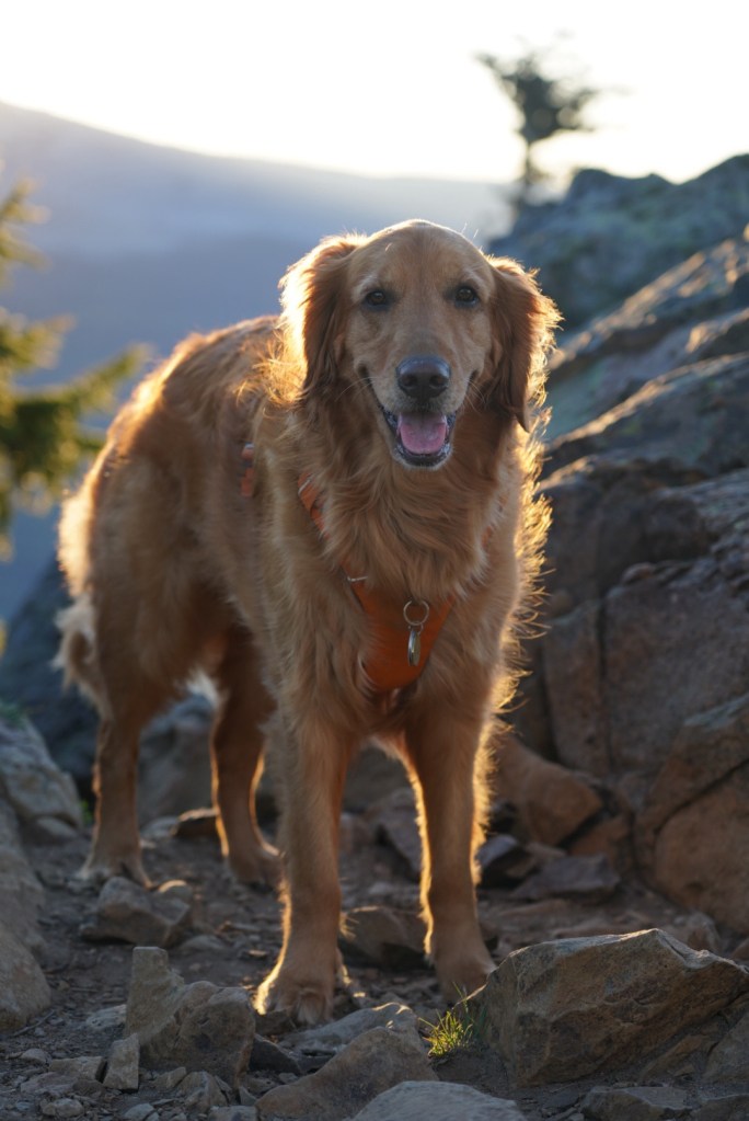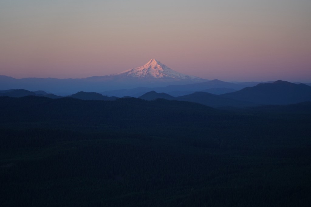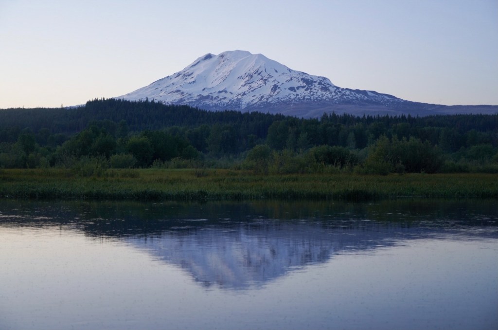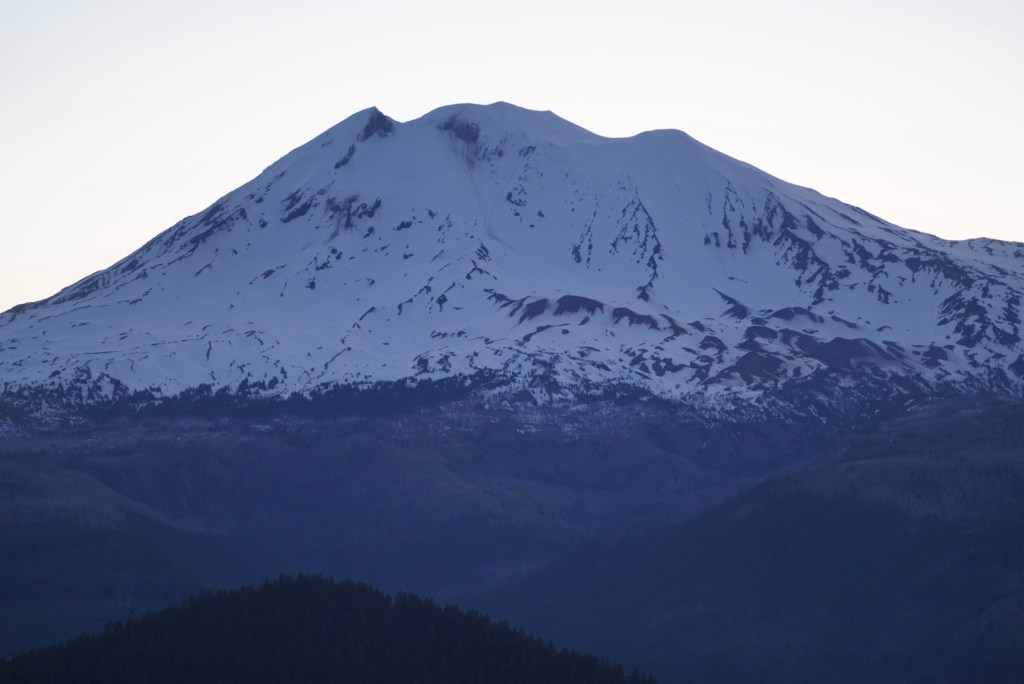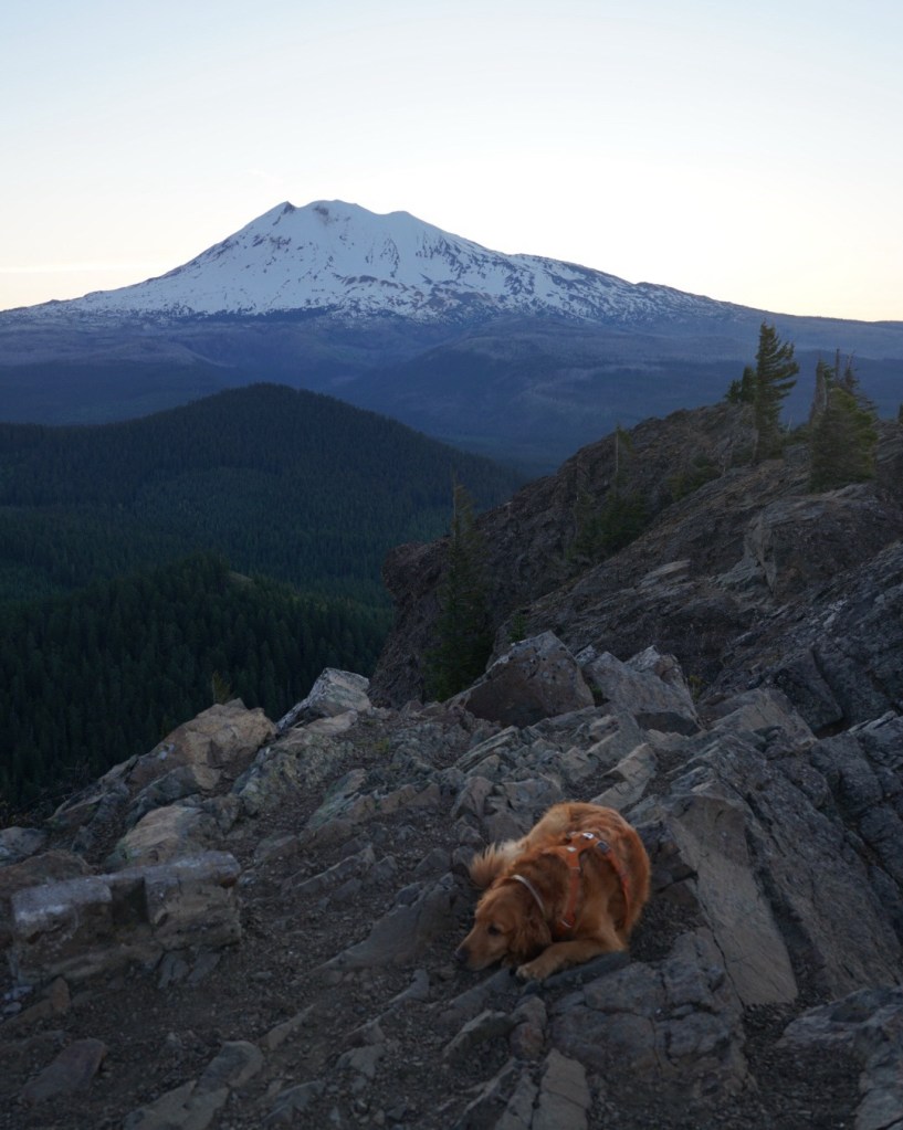 Moose and I left Vancouver with enough time to catch a sunset on Mount Adams. I always love driving along the Columbia River Gorge and breaking my neck to catch a glimpse of all the peaks and trails I’ve enjoyed hiking from Portland to Hood River. The beauty can be distracting as I missed my exit which added a lengthy detour. The sun had just set as we reached Trout Lake but Mount Adams looked beautiful in blue! The mosquitos were awful so I did not enjoy this view long.