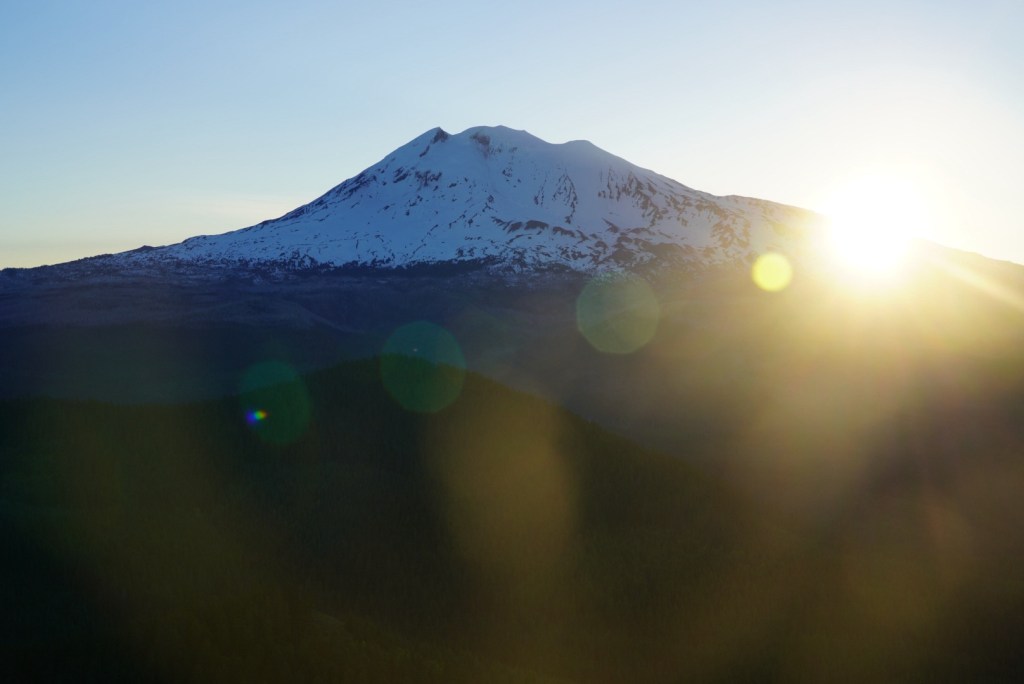 The Sun finally popped out over Mount Adams.