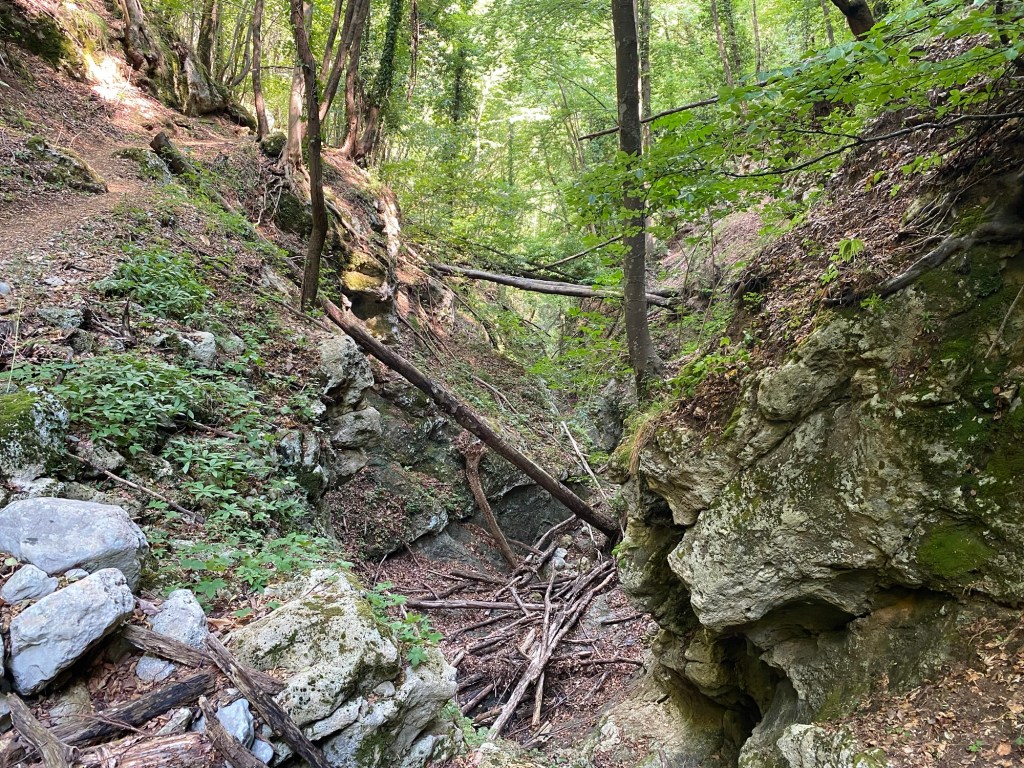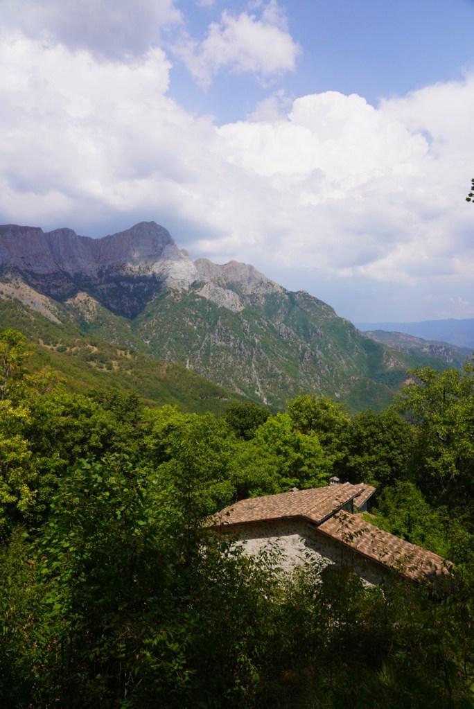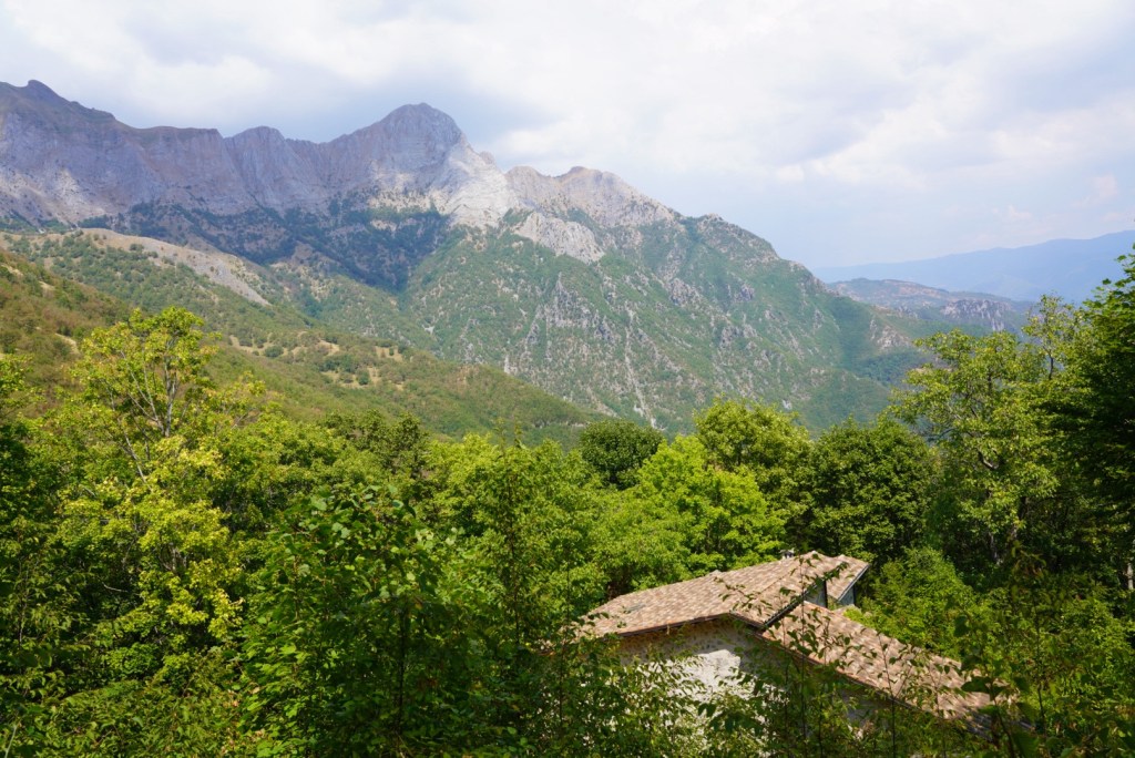 The trail follows the Turrite di Gallicano stream through town and past some old mountain homes before a short but steep climb through an old lush forest.